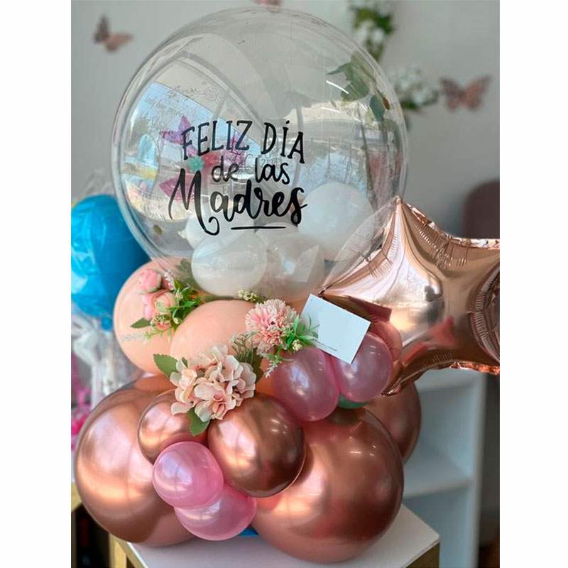 Balloons Bouquet de Globo Burbuja en combinación de globos mate y cromado, decoración con globo metalizado de estrella y flores artificiales.